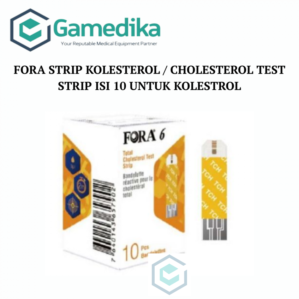 harap konfirmasi terlebih dahulu "FORA 6 Strip Kolestrol yang berfungsi untuk mengecek kadar kolestrol dalam darah. AKL 20101913354 Spesifikasi Produk • Didesain untuk penderita diabetes atau penyakit kardiovaskular atau sindrom metabolik yang lebih suka pilihan pemantauan sendiri. • Enzim: Kolesterol esterase / Kolesterol oksidase • Volume sampel kecil - 3.0μL • Hasil cepat - 60 Detik • Rentang Pengukuran: 100 ~ 400mg / dL • Paket foil individual dengan masa simpan 18 bulan FORA 6 Plus 6in1 Strip Kolesterol Box isi 10 pcs . "