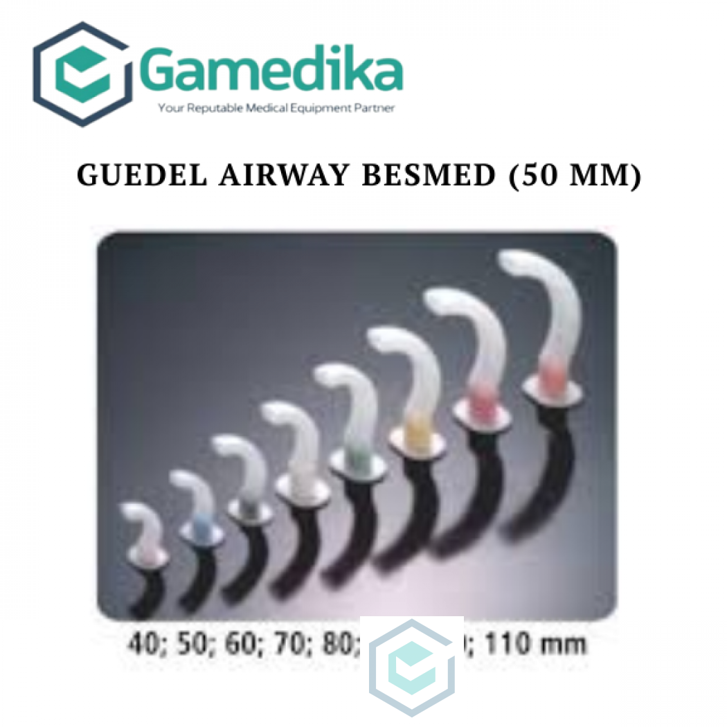 Guedel Airway/Guedel Besmed steril untuk sekali pakai,sebagai alat bantu jalan nafas utk menahan pangkal lidah, dan dinding belakang faring bisa di pakai di rumah sakit , di UGD , ANESTHESI dll Menggunakan kode warna untuk ukuran sehingga memudahkan pemilihan ukuran yang sesuai: --size 50 mm = ( 00 ) = blue Satuan: pcs NOMOR IZIN EDAR: AKD 10403900266
