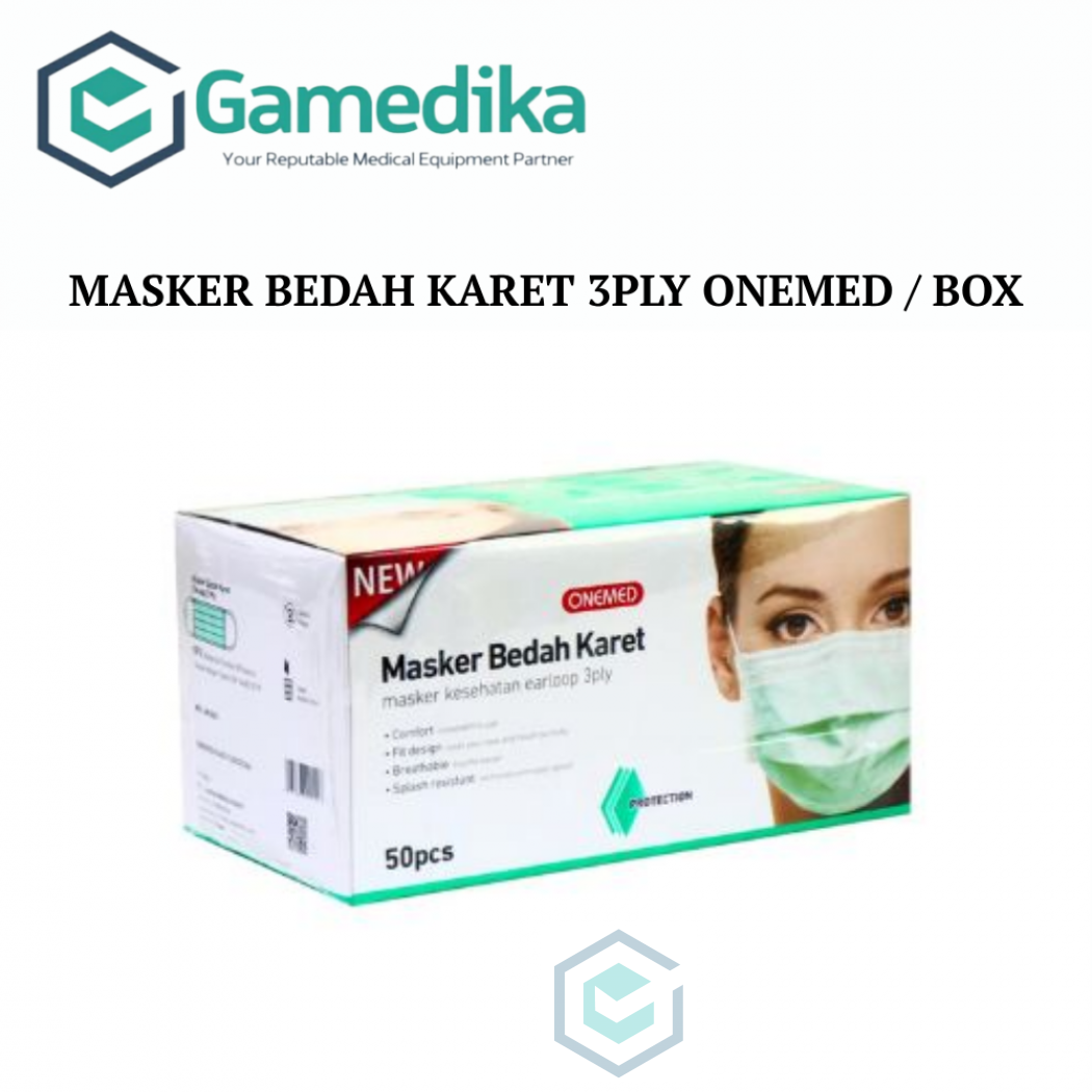 Harap konfirmasi terlebih dahulu, MASKER BEDAH KARET 3PLY ONEMED / BOX Masker 3 ply (terdiri dari 3 lapisan, lapisan luar, dalam dan bagian tengah yang berfungsi sebagai filter, bactery filter efficiency 99.9%) dengan tali karet lentur yang dipasang di telinga. Menutup hidng dan mulut dengan sempurna, dan tahan percikan air. Warna yang aman karena tidak mengandung banyak cat pewarna seperti masker lain. Cara pakai mudah dengan menggantungkan tali karet di kedua telinga, mengencangkan kawat sesuai bentuk hidung, dan menarik bagian bawah masker hingga menutup sampai dagu. KONFIRMASI WARNA Satuan: box isi 50 lbr NOMOR IZIN EDAR: AKD 20805410318