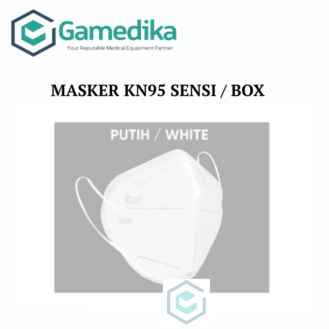Harap konfirmasi terlebih dahulu MASKER KN95 SENSI / BOX Model: Pengait Telinga (Earloop) Tipe: 6-PLY (6 Lapis) Fitur: 3-D Ergonomic Design, Double Filter (Penyaring Ganda), Tali pengait lembut & tebal. Desain 3-D Ergonomic yang memberi ruang di depan mulut, tidak menempel di bibir dan menutup yang lebih rapat dari atas hidung sampai ke dagu. Penyangga hidung lebih aman karena tidak mengandung bahan logam atau kawat. Pengait telinga (Earloop) yang terbuat dari bahan lembut dan bebas latex. Dirancang dengan Double-Filter (penyaring ganda) untuk memberikan perlindungan lebih terutama saat berada di lingkungan yang kurang higienis atau kondisi yang berpotensi menyebarkan penyakit melalui udara atau droplet. Efisiensi Filtrasi Bakteri (BFE) 99% untuk ukuran 3 µm Efisiensi Filtrasi Partikulat (PFE) 99% untuk ukuran 0,1 µm