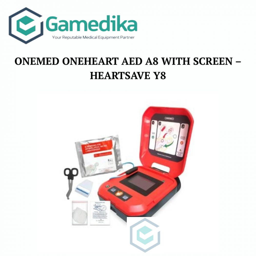 Harap konfirmasi terlebih dahulu, ONEMED Oneheart AED A8 With Screen – HeartSave Y8 ONEMED Oneheart AED A8 With Screen – HeartSave Y8 – Automated External Defibrillator – Simple operation – Smart device – Data transfer – Voice broadcast – Fault warning – Equipment self-check Smart Host – Smart off-wall boot technology – Intelligent analysis algorithm technology – Intelligent adaptive volume adjustment Smart Electrode Sheet – write and read electrode information – Provide accurate electrode self-inspection report – Compatible with USB function Smart Battery – Accurate calculation of battery power – Effective safety projection for the battery – Provide accurate battery self-test report – 6 years of long battery life Specification: – Data storage: ECG wave, CPR data: 10h, audio log: 2h, event log: 2000, self-test report:2650 – Data transfer: 2.0 – Energy output: for adult: 200J/300J/360J, for children: 50J/70J/100J – Shock frequency: 75 times 360 discharge – Battery: LiMn02, 24V, 1.2Ah, non re-chargeable – Shelf life: 10 years