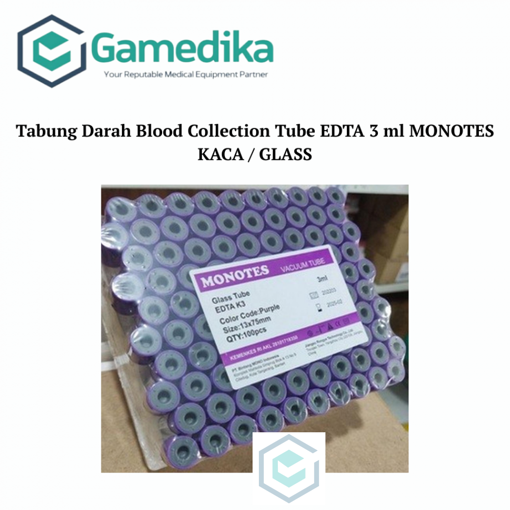 - Tabung Darah Blood Collection Tube EDTA 3 ml MONOTES KACA / GLASS