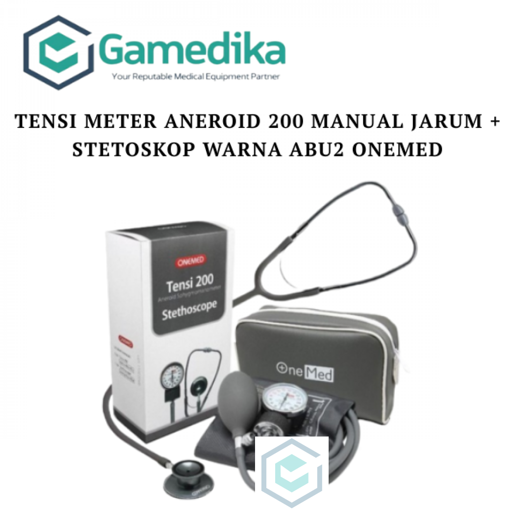 "HARAP KONFIRMASI TERLEBIH DAHULU. Fungsi : untuk mengukur tekanan darah sistolik dan diastolik Tensimeter ini cocok utk digunakan oleh segala kalangan tenaga medis, baik bidan, perawat, dokter maupun mahasiswa kedokteran Tensi aneroid atau tensi jam/clock merk OneMed (warna grey) 1 set dalam box isi: - Tas - Jam Tensi - Manset + selang Tensi - Bola Tensi Spesifikasi: Type: Dual Head Ear Tipe: plug (kaku) Bahan Metal tube: Aluminium Bahan Y Tube: Plastik Warna Y tube: grey Warna Head: Silver Metal Kelebihan dari tensi jarum ini adalah: 1. Terdapat pengait pada manometer sehingga bisa dikaitkan pada manset 2. Manset terbuat dari bahan nilon dan menggunakan velcro sebagai pengait sehingga mudah dipasang dan dilepas "