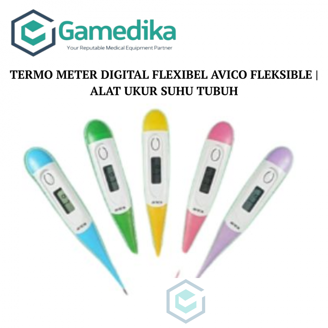 "Harap konfirmasi terlebih dahulu.Termometer Fleksibel Avico merupakan alat ukur suhu badan pada bayi, anak dan dewasa, dengan teknologi digital memungkinkan tingkat keakuratannya sampai dengan skala 0,1. Dengan ujung yang fleksibel atau lentur sehingga termometer ini sangat mudah untuk digunakan. Fitur : - Lentur - Cepat - Dapat diandalkan akurasinya - Angka mudah dibaca - Memori hasil penyimpanan Spesifikasi: - size 12,3 x 1,7 x 0,9 cm - terdengar suara alaram bila suhu tubuh naik (Beeper alert ) - low battry (200jam) - menggunakan batry ukuran SR41, UCC 392 atau LR41 - berat 10 grm termasuk battry - tombol tekan on/off (Auto Shut-off) - menggunakan derajat Celcius - ISO 13485 / ISO 9001 TUV - Easy to read - LCD display - Memory Function - Quick test - 100% Safe (No Mercury) - Accurate Paket terdiri dari : 1 Digital Thermometer (termasuk Baterai) 1 Case penyimpanan Harga per 2 pcs AKL 20901915486 "