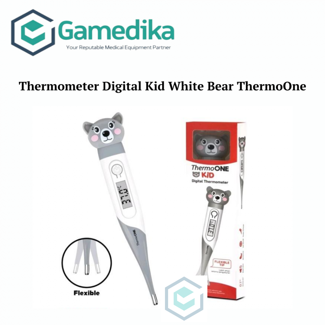 Harap konfirmasi terlebih dahulu. Thermometer Digital Kid White Bear ThermoOne Onemed Thermometer Digital (bebas mercury) merk OneMed EKONOMIS, yang mudah digunakan, dan mempunyai akurasi tinggi, Layar LCD lebar, mudah dibaca, waktu pengukuran 60 detik. Ada alarm pada akhir pengukuran suhu dan memori pengukuran terakhir. Mati otomatis sesaat setelah tidak digunakan. - Display 32-42 C - Akurasi 0,1 C - Waktu pengukuran 60 detik - Bisa dipakai pada oral, axila, dan rectal - Otomatis mati setelah 10 menit tidak digunakan - Batery 1.5V button battery (LR/SR 41) tahan sampai 15 bln pemakaian - Memory : hasil pengukuran terakhir - Dilengkapi dengan tutup protector - pcs One Thermometer for One Patient (mencegah cross infection) dipakai di rumah tangga, klinik, praktek dokter, atau rumah sakit. GO GREEN-ramah lingkungan, non mercury. Sebagai pengganti thermometer HG yang berbahaya dan merusak lingkungan. NOMOR IZIN EDAR: AKL 20901220198